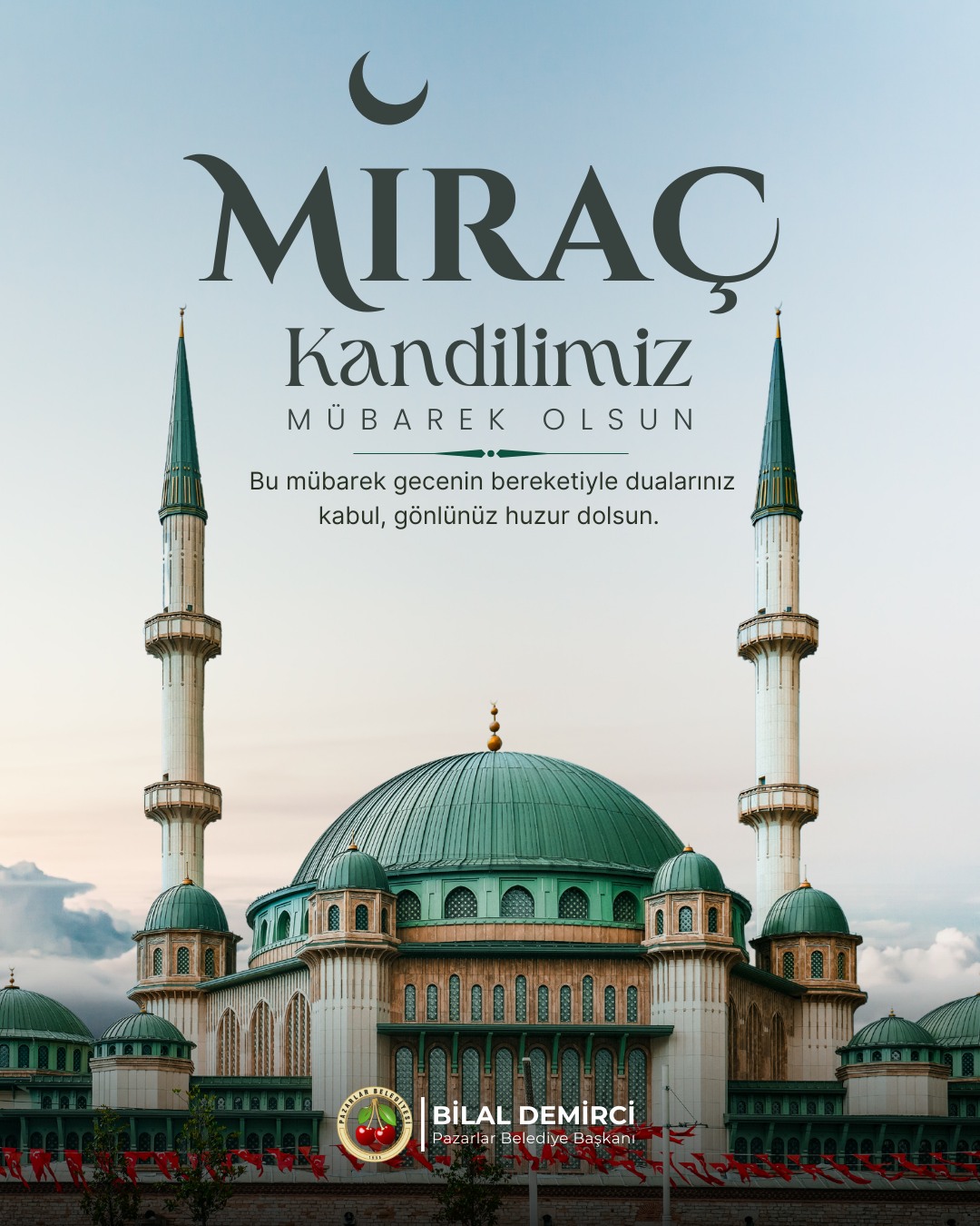 Bu mübarek gecenin bereketiyle; edilen tüm duaların kabul olmasını, gönüllerin huzurla dolmasını ve bu müstesna zaman diliminin ilçemize, ülkemize ve tüm İslam alemine hayırlar getirmesini temenni ediyoruz.